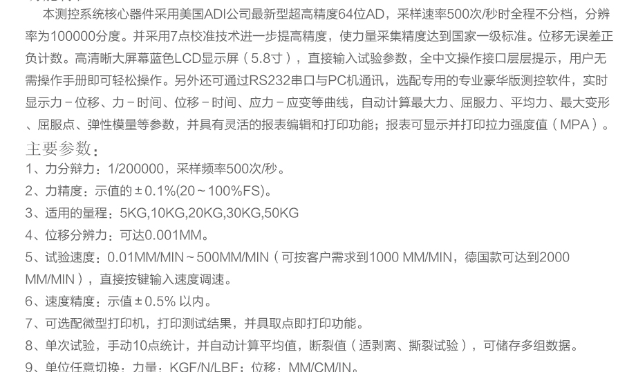產品型號:JQ-8550 品牌:劍 喬 用途:本系列機廣泛用于各類薄膜、五金、橡膠料、紡織、建材、絕緣體、電線、電纜、端子等各類材料。測試其拉伸、撕裂、穿刺、剝離、抗壓、彎曲、抗剪切、定荷重、定位移、三點抗折